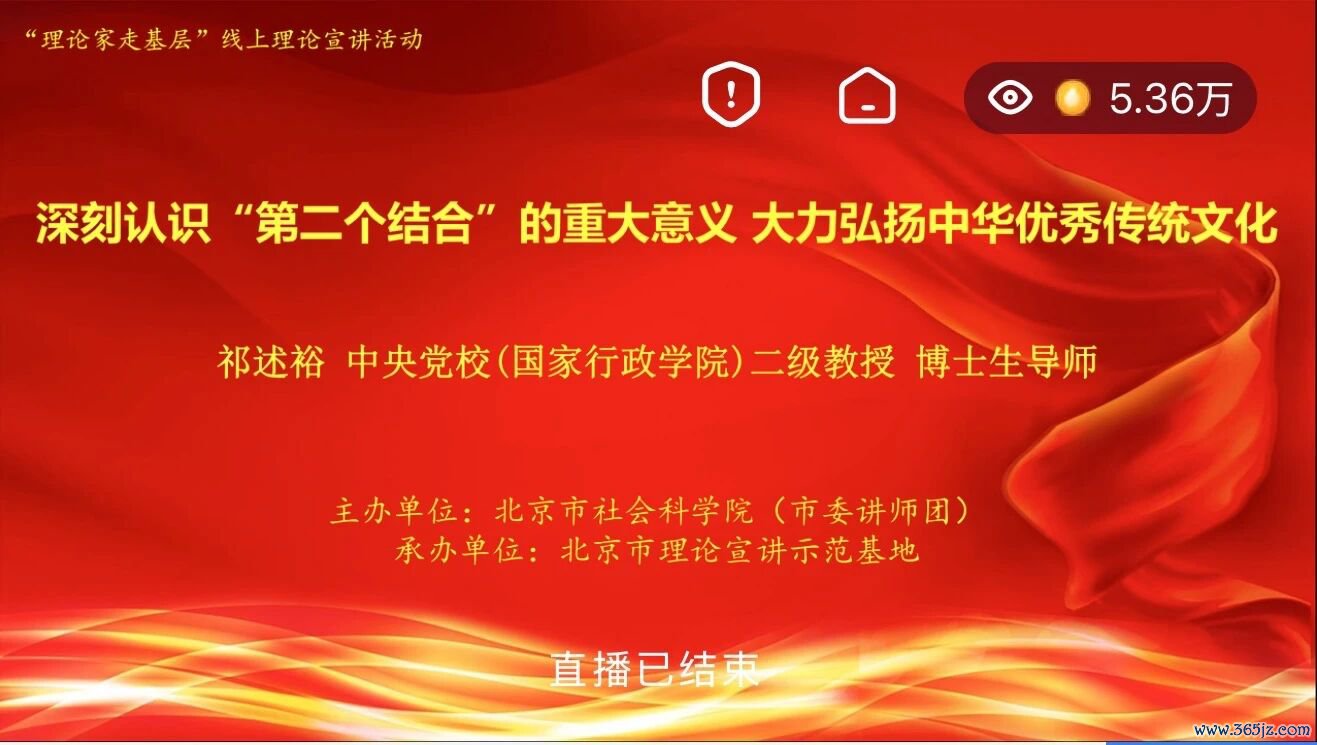 为深刻把合手“第二个逢迎”的表面内涵与蹙迫意旨,涵养弘大党员干部大师深入显露中华优秀传统文化的时间价值,12月23日,北京市社会科学院(市委讲师团)举办“表面家走下层”线上宣讲步履,邀请中央党校(国度行政学院)祁述裕解说作《深刻鉴定“第二个逢迎”建议的要紧意旨, 跋扈进展中华优秀传统文化》专题薪金。38家“表面宣讲示范基地”及全市下层党员干部大师近5.4万东说念主次在线学习,反响蛮横。